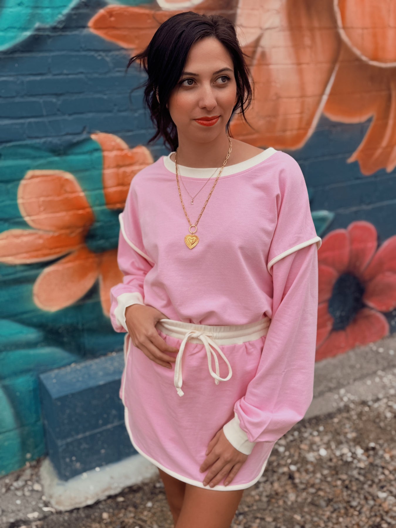 FRENCH TERRY DROP SHOULDER PULLOVER & SKORTS SET