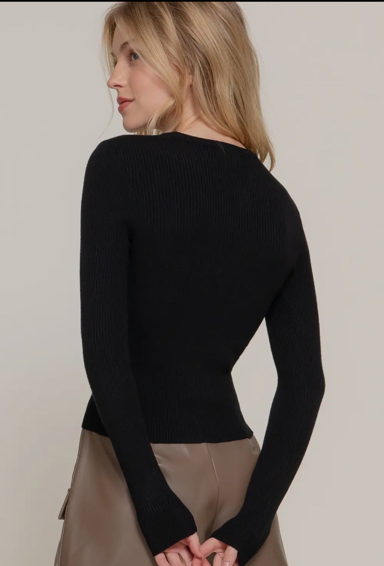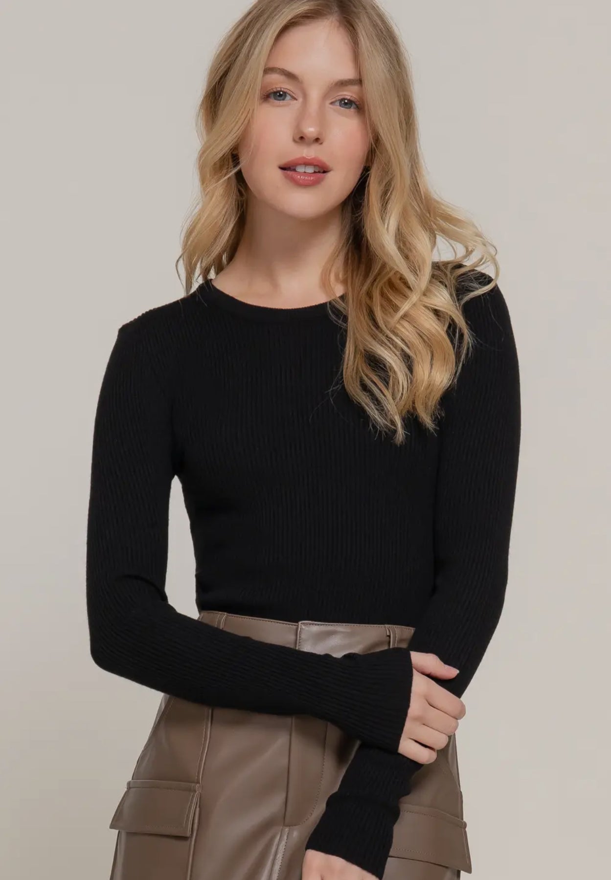 Knit basic ribbed layering top. Fits true to size. If you want a looser fit we recommend going up one size. These tops are great for layering.