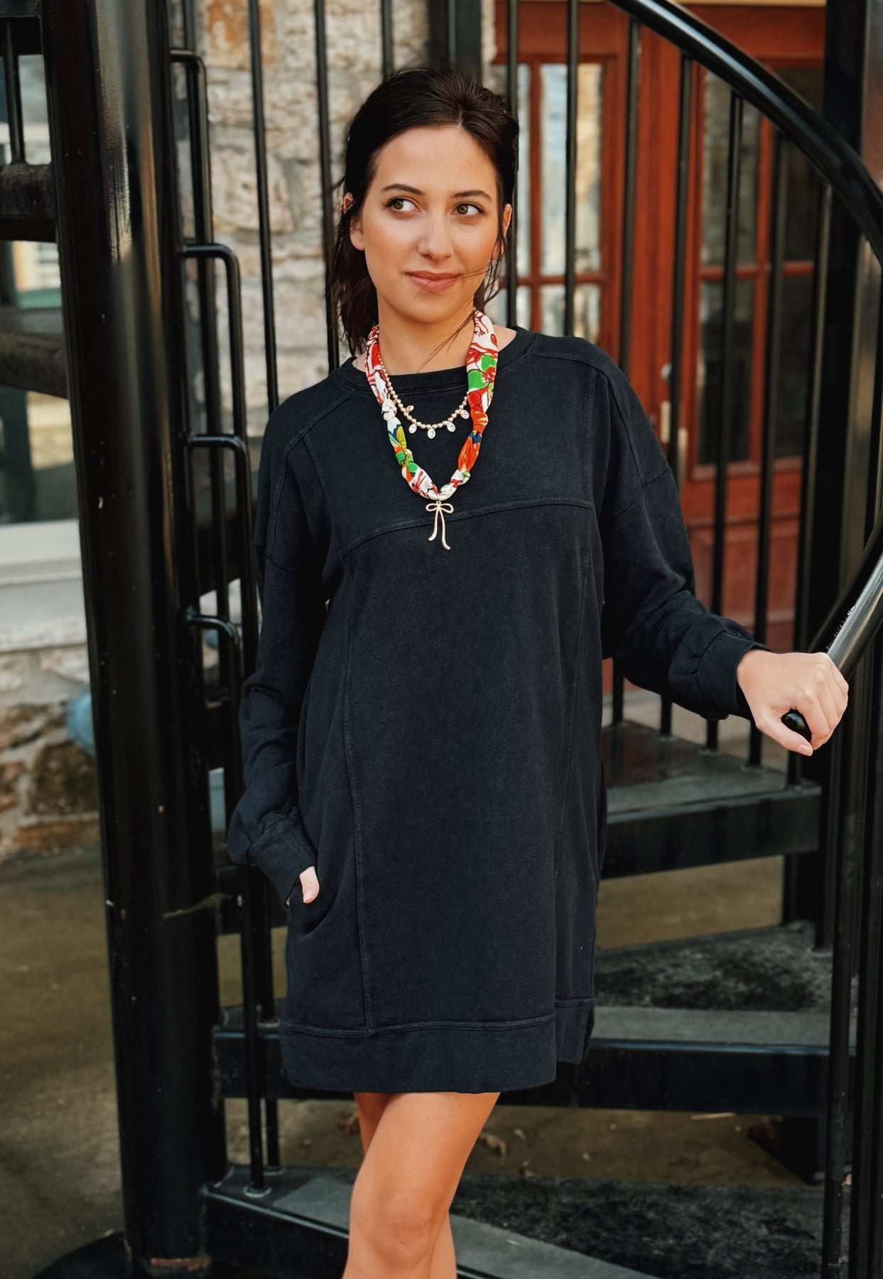 FRENCH TERRY ACID WASHED DRESS WITH POCKETS