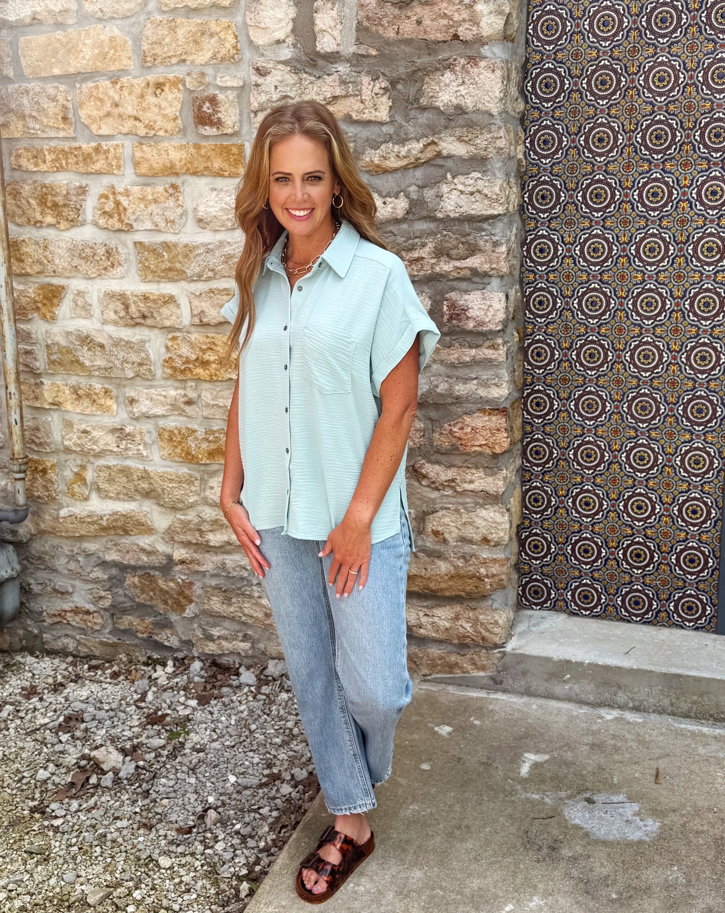 Bella Button Airflow Top- Light Sage