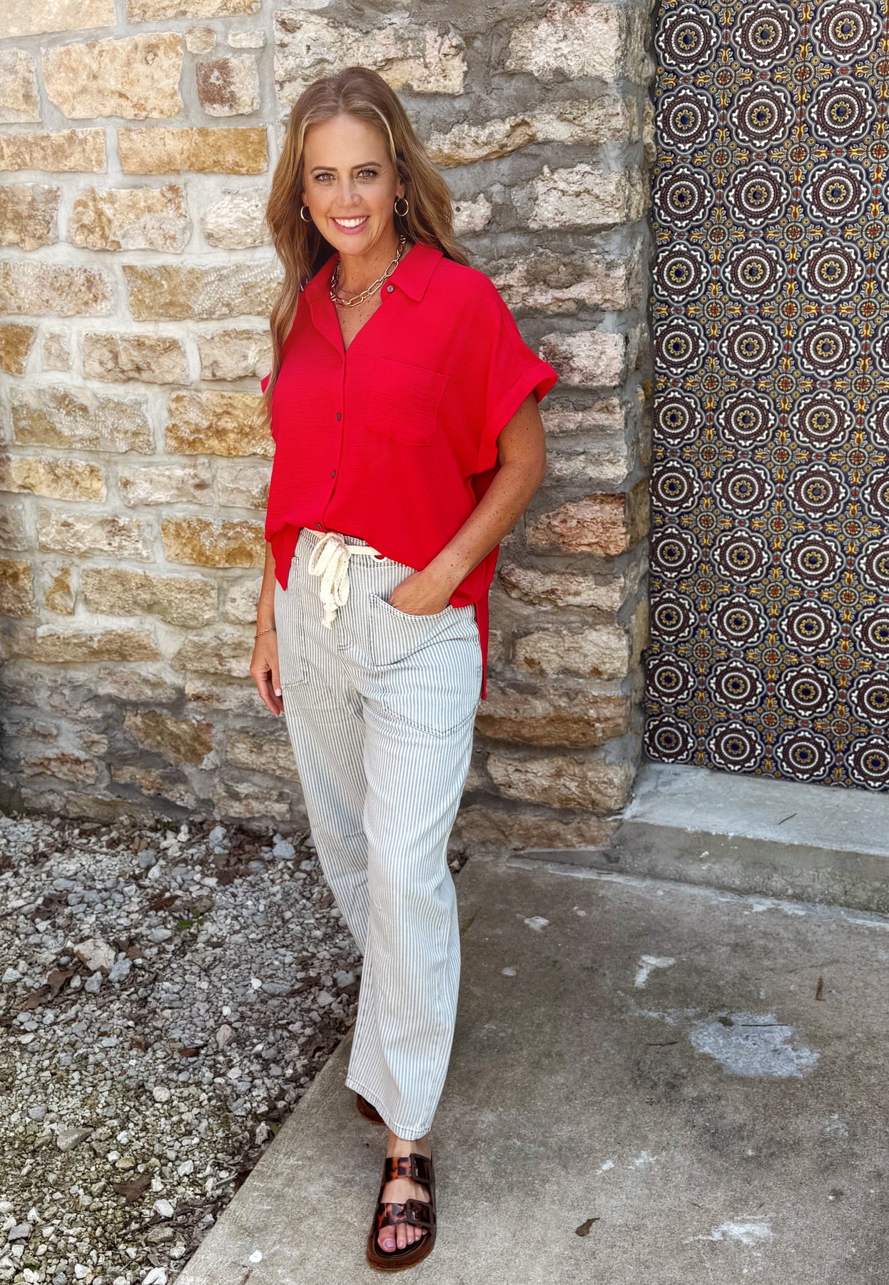 Bella Button Airflow Top- Red