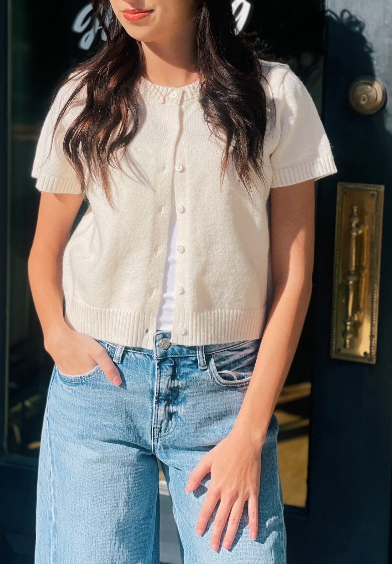 Raven Short Sleeve Cardigan-Ivory