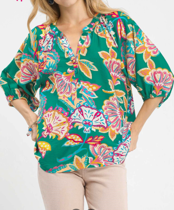 Renee Floral Top- Green