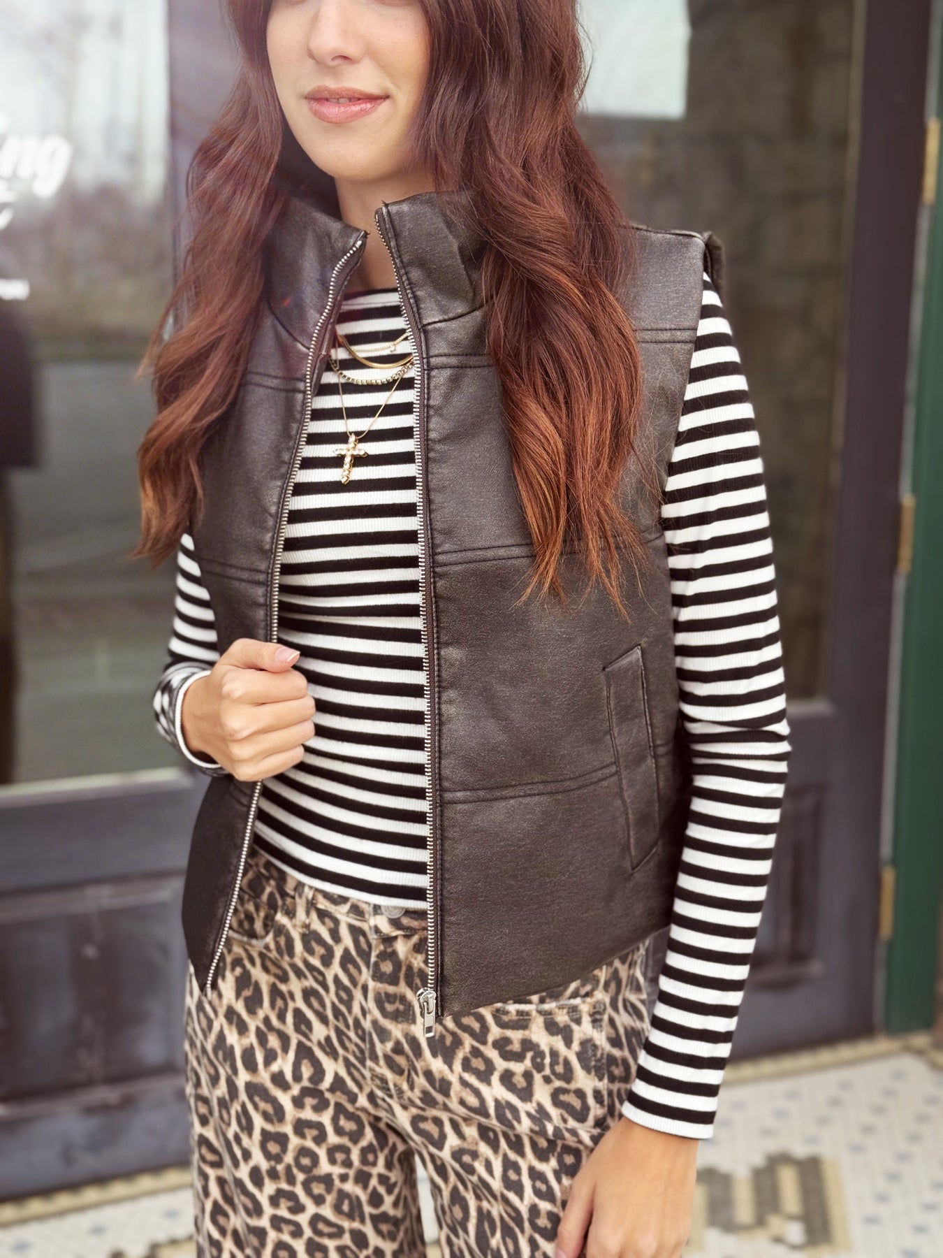 LONG SLEEVE BOAT NECK STRIPE BRUSHED RIB TOP