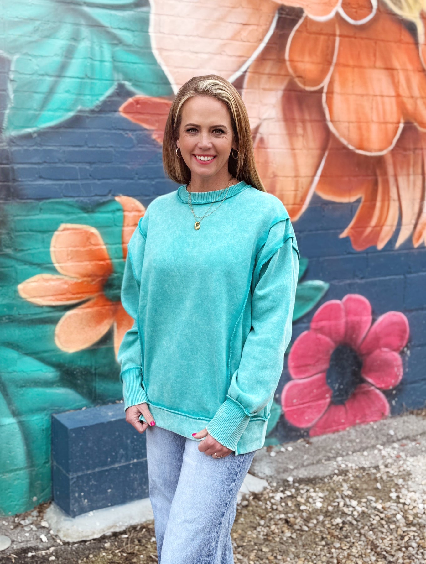 Britt Acid Wash Fleece Sweatshirt- Mint