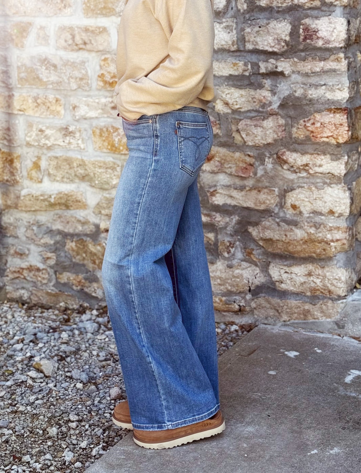 Step into trend in these new Judy Blue Retro Wide Leg Jeans. The high-rise fit flatters your shape and holds you in in all the right places, while offering all-day comfort and a timeless silhouette.