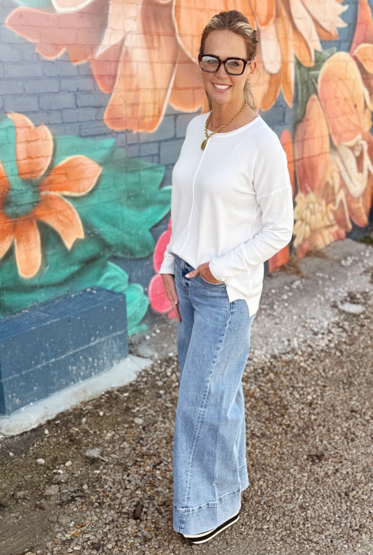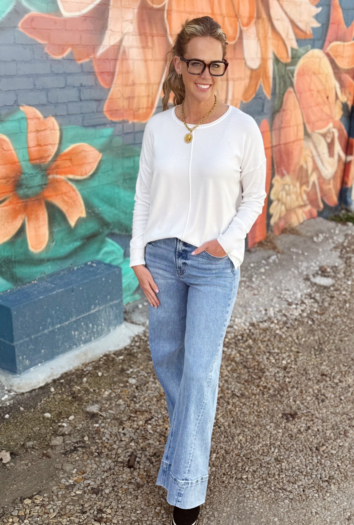VISCOSE FRONT SEAM ROUND-NECK SWEATER
